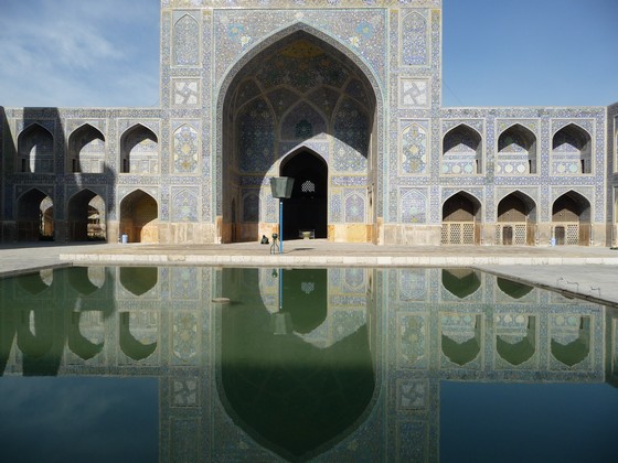 In Esfahan gibt's dann nicht nur viele bedeutende historische Viertel sondern auch breite Straßen mit wahnsinnig viel Verkehr, unendlich viele Geschäfte aller Art - auch moderne Einkaufspassagen - und unglaublich viele Menschen. Berühmt ist Esfahan aber vor allem wegen der riesigen Moschee mit dem großen offenen Innenhof. Vor diesem Gebäudekomplex befindet sich im Zentrum der Stadt der ausgedehnte Meidan-e Emam-Platz, an dessen Seiten weitere große Moscheen stehen.